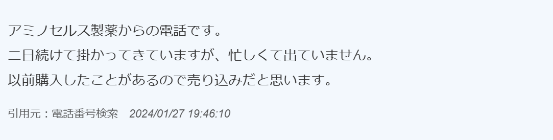 出典:アミノセルス製薬-営業電話