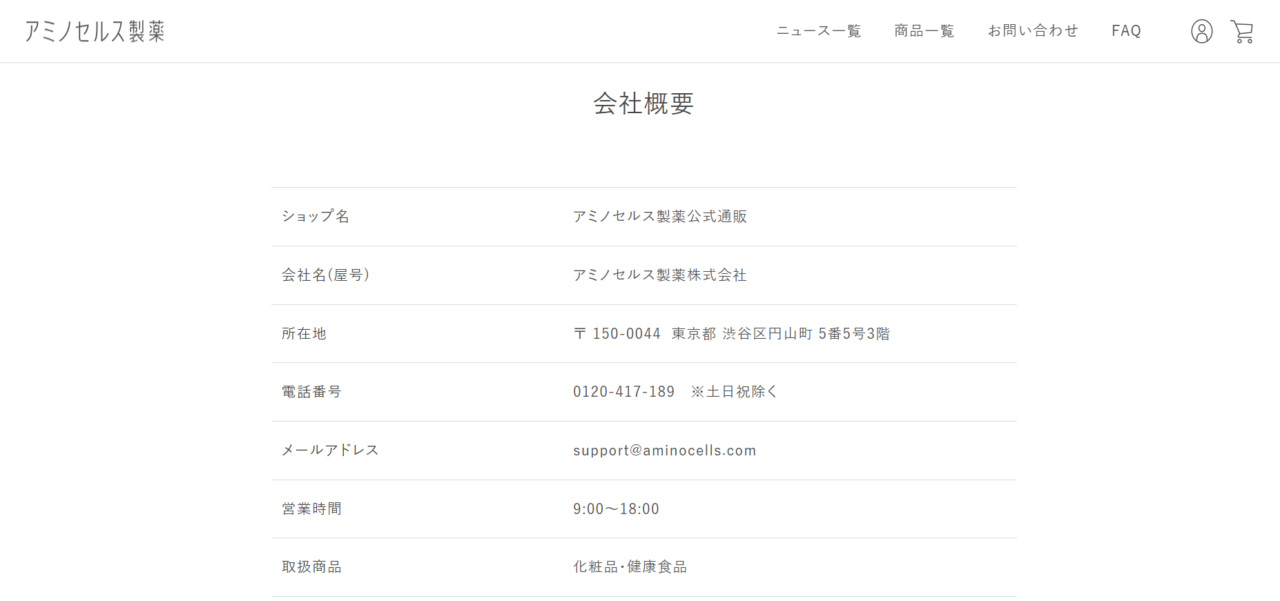 ホームページhttps://aminocells.com/shop/base_info