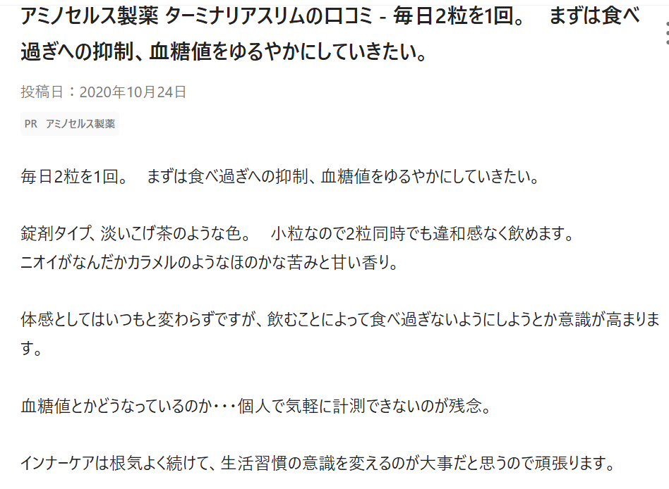 このたび、アミノセルス製薬株式会社さんのターミナリアスリムを試してみました。