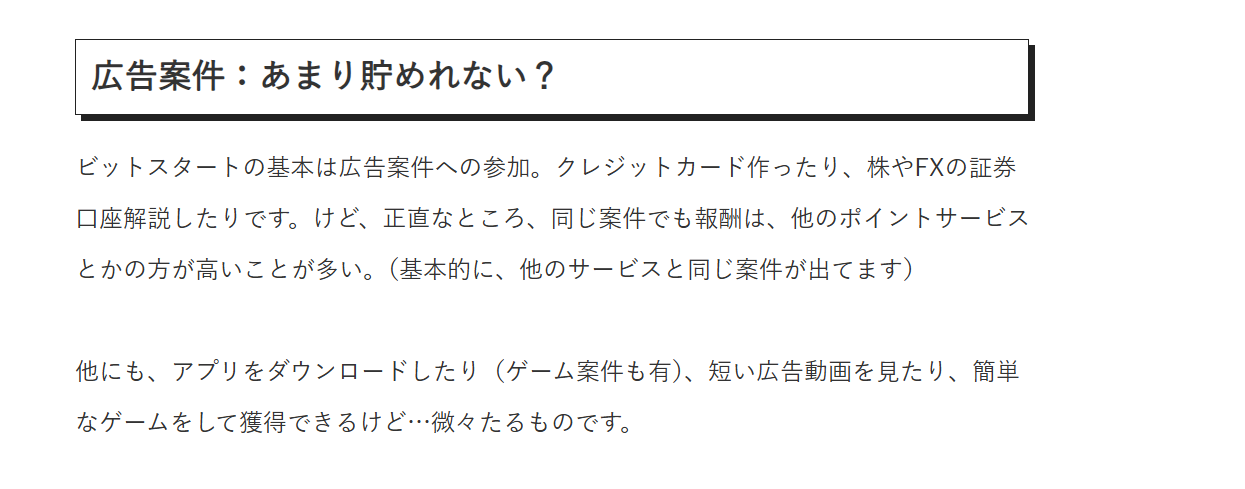ビットスタートは、他のポイントサービスと比べて報酬がやや劣るものの、コツコツとビットコインを貯める手段として程よくおすすめ!!