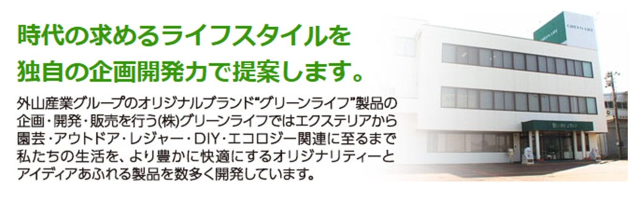 GREEN LIFE(グリーンライフ)を運営している株式会社グリーンライフは、1977年に創業された会社で、エクステリア・園芸・DIY用品(グリーンライフブランド)の企画・開発・販売を行っています。