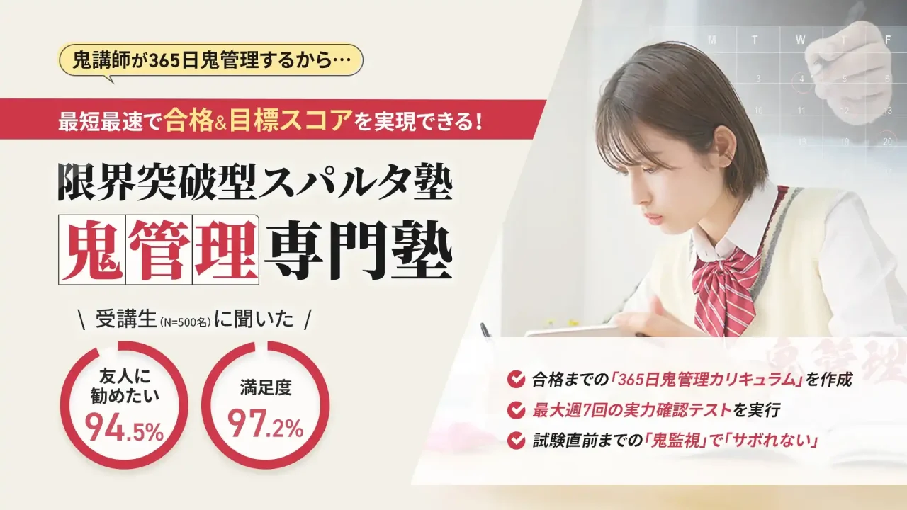 出典:鬼管理専門塾|大学受験・英検対策の徹底管理型スパルタ学習塾